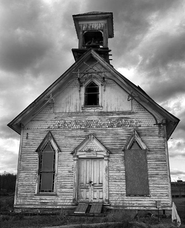 This is an image of the Union Church that was built in 1889. There was a possibility that the church would be restored, but is located close to a well pad. With fracking in the region, the restoration plan was canceled. It now stands like a large gravestone. With natural gas mining in the same area, I wonder whether it will be demolished in its current decrepit condition.